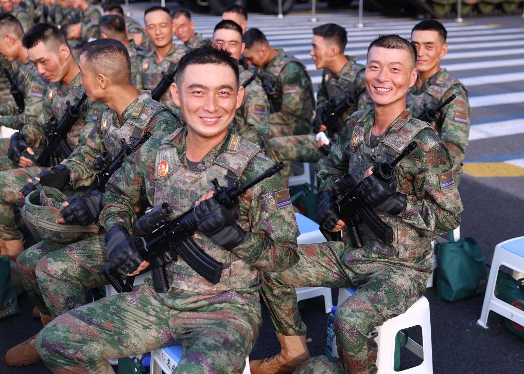 在阅兵场上,他们是整齐划一的方阵,坚不可摧。但在这里、在大会正式开始前的清晨,他们也只是一群二十出头的青年,有喜悦、有紧张、有兴奋。那一瞬间,军人和“普通人”的界限悄然模糊,那些刻板印象中冷峻威严的“铁血硬汉”,此刻却鲜活、亲切,如邻家少年。
