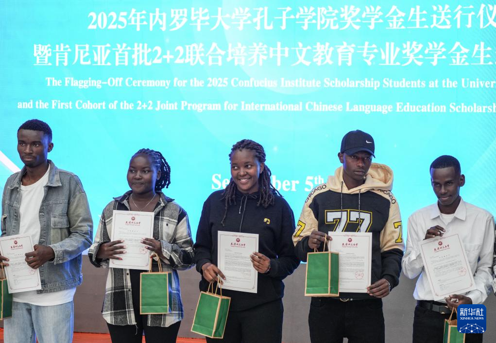 新华社内罗毕9月5日电(记者李卓群 李亚辉)2025年内罗毕大学孔子学院奖学金生送行仪式暨肯尼亚首批“2+2”联合培养中文教育专业奖学金生送行仪式5日在肯尼亚首都内罗毕举行。