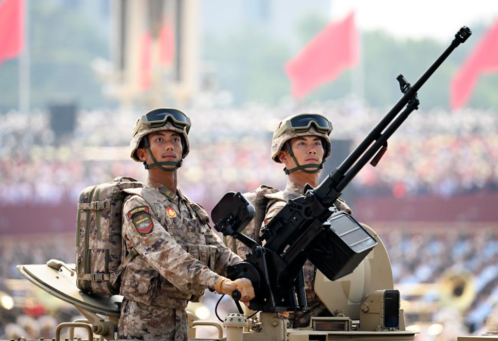 这是中国人民解放军仪仗方队接受检阅。新华社记者 刘续 摄