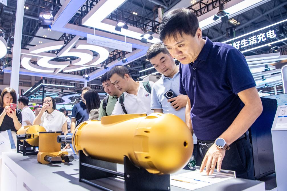 9月5日,观众在智博会上参观激光云粒子成像仪。新华社记者 唐奕 摄