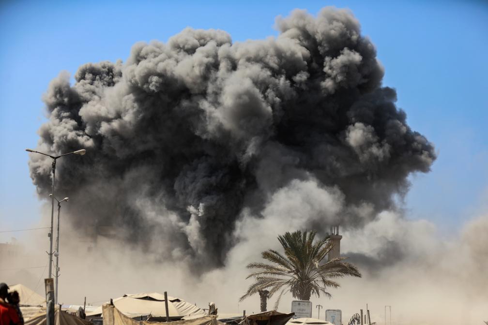 9月5日,加沙城一栋建筑遭以色列军队空袭后升起浓烟。新华社发(里泽克·阿卜杜勒贾瓦德摄)