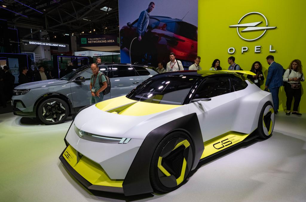 9月9日,人们在德国慕尼黑国际车展的欧宝汽车展台参观概念车。新华社记者 张帆 摄
