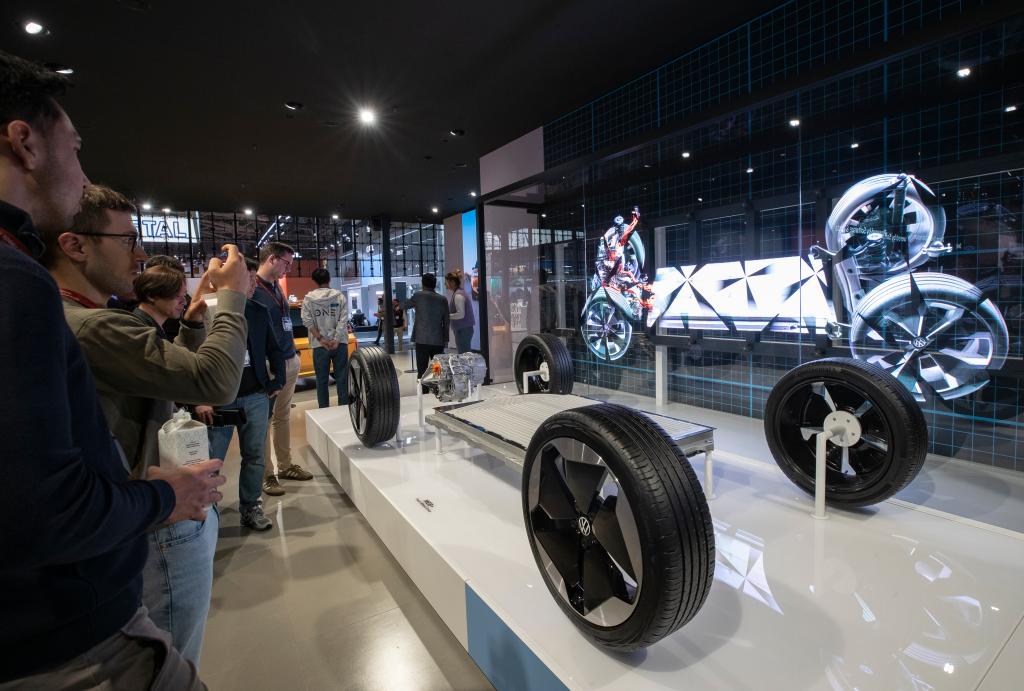 9月9日,人们在德国慕尼黑国际车展的大众集团展台参观。新华社记者 张帆 摄