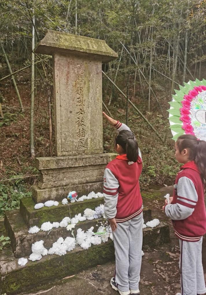 马岙中心学校的学生们缅怀祭奠烈士。新华社发