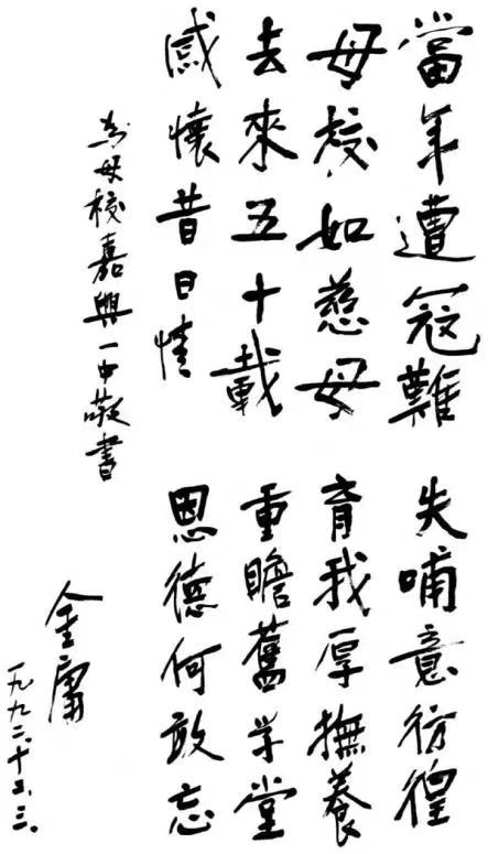 金庸为母校嘉兴一中题词中感念张校长恩情。新华社发