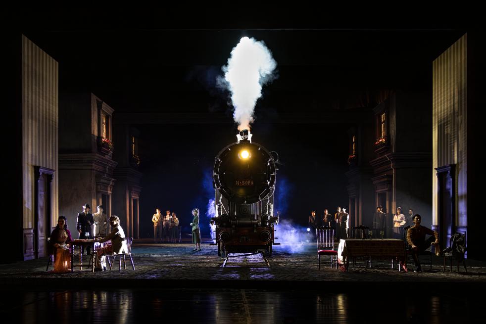 不同于老版的写实内景,这一版演出舞台设计以外景为主,一列老式蒸汽火车随剧情推进在台上行进、旋转。何冰说,火车这一意象,一方面以视觉压迫感象征战争在人们心中投下的深深恐惧,一方面也蕴含“它也可以带我们去远方”的温暖希望。(记者白瀛)