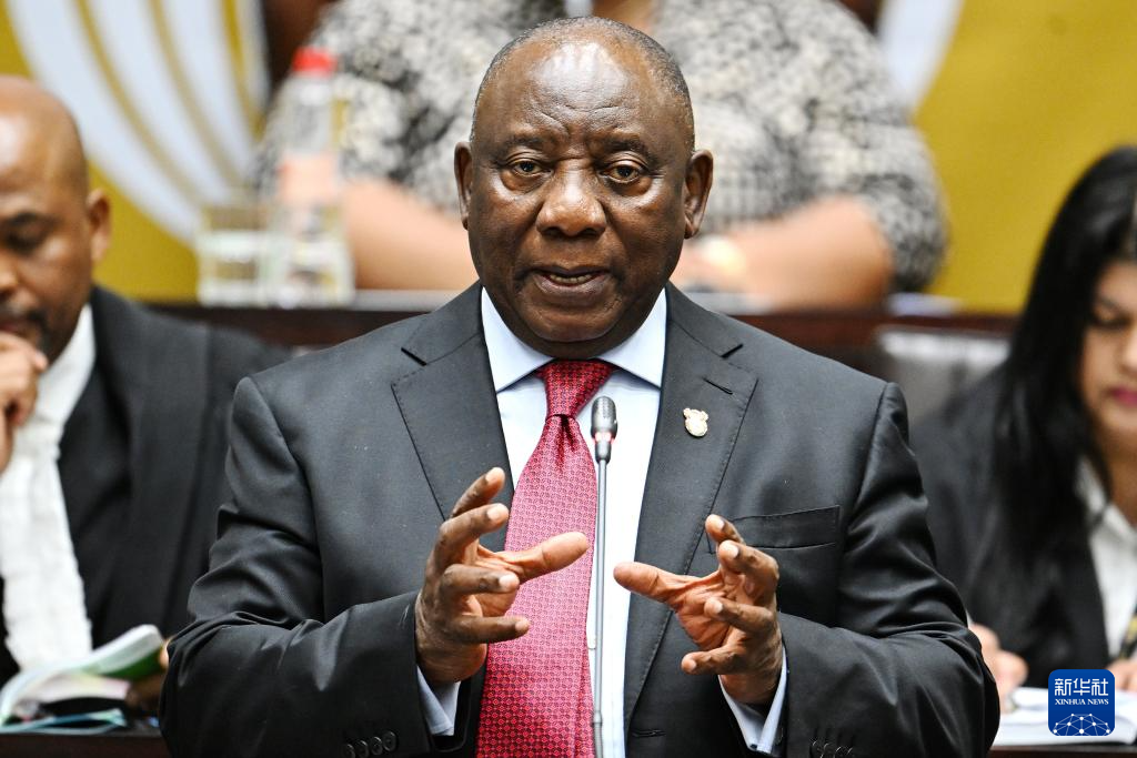 9月9日,在南非开普敦,南非总统拉马福萨在南非国民议会回答议员提问。新华社发(哈比索·姆卡贝拉摄)