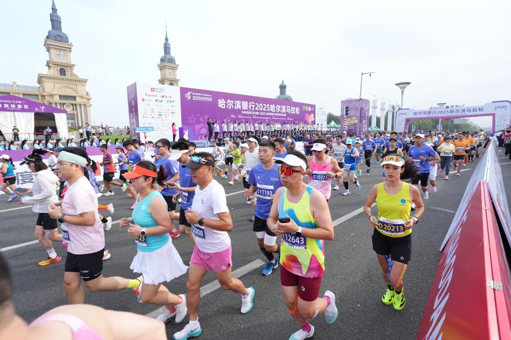 8月31日,2025哈尔滨马拉松鸣枪开赛。 新华社记者 王松 摄