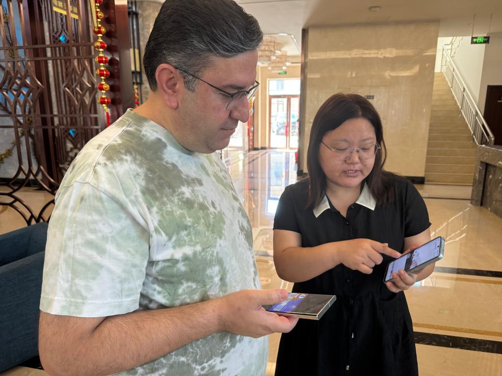 伊朗采购商在白沟新城了解箱包产品。 新华社记者 王美祺 摄
