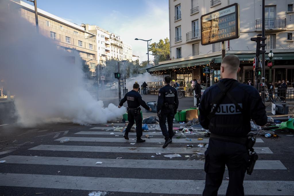 法国教育部宣布,当天全国约有100所高中停课,另有27所学校遭示威者封锁。