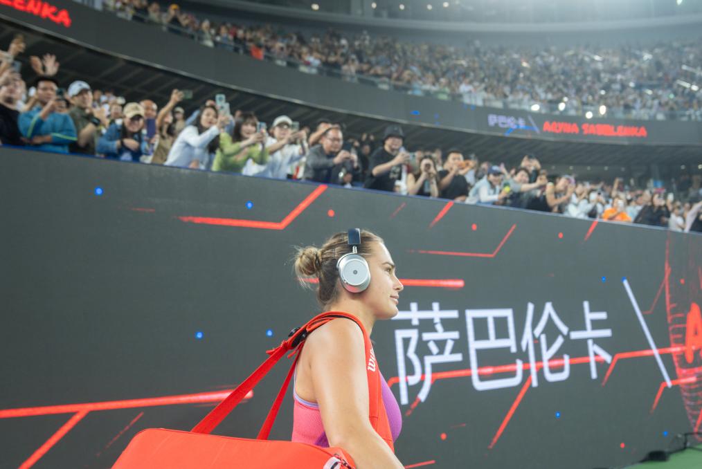 在2024年WTA武汉网球公开赛女单决赛中,白俄罗斯选手萨巴伦卡入场。新华社记者 杜子璇 摄