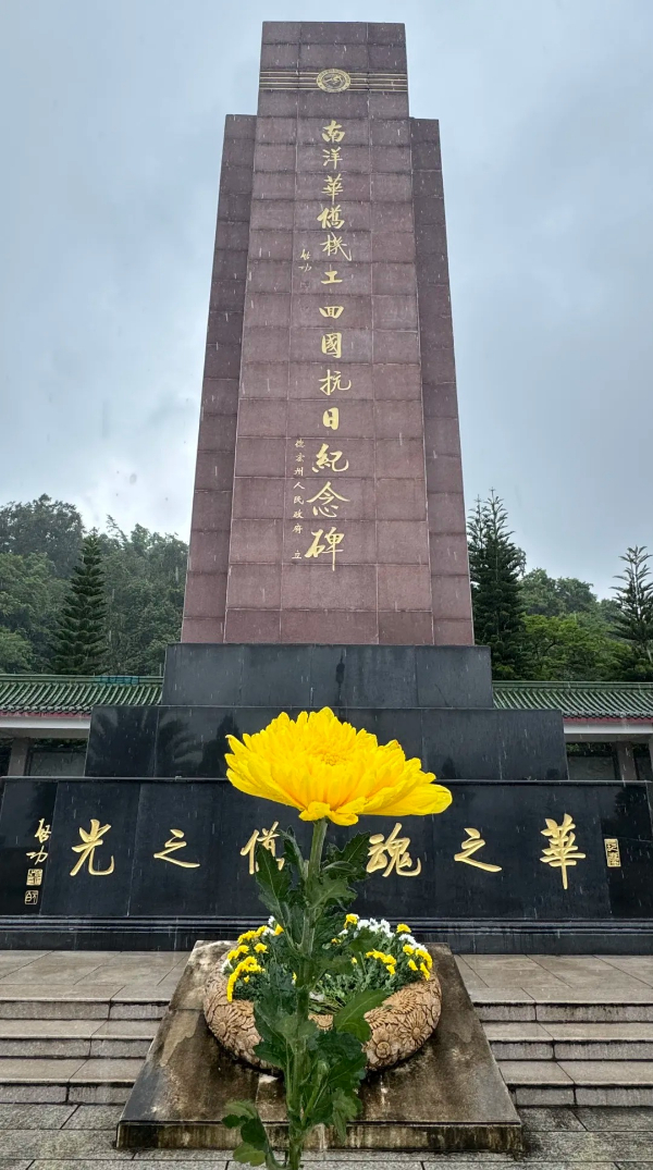 南洋华侨机工回国抗日纪念碑,位于云南德宏州瑞丽市畹町镇。新华网记者肇蕾摄