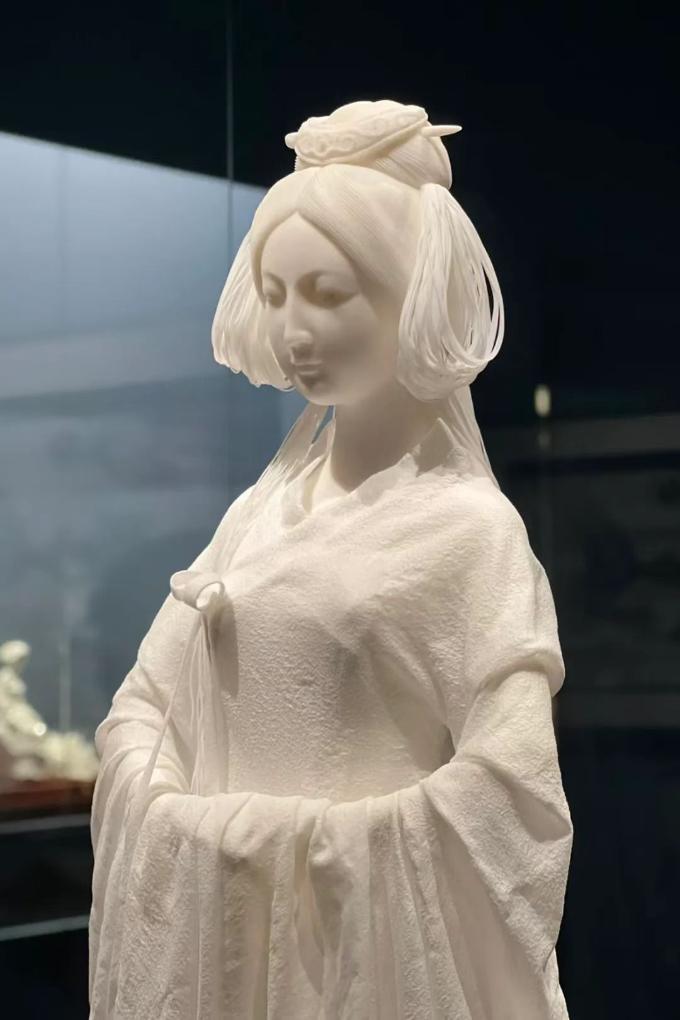 今年7月,“万象本色——中国白·德化瓷”上海艺术大展在中华艺术宫吸引超50万观众打卡。福建省工艺美术大师连德理创作的白瓷人物雕塑作品《神话》,以其瓷衣“薄如纸、质如纱、细如丝”引得现场观众连连称赞。“融入当代审美,用当代艺术语言创新,让更多人看见德化白瓷之美。”连德理说。
