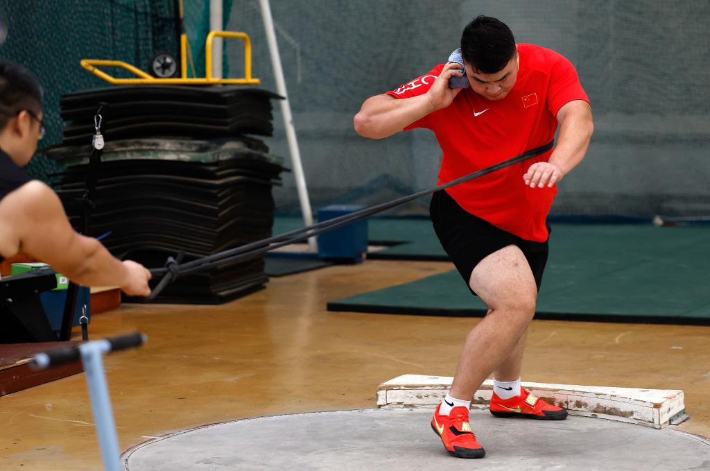 8月29日,中国男子铅球选手邢家梁在北京备战东京世锦赛。新华社记者 王丽莉 摄