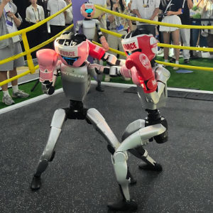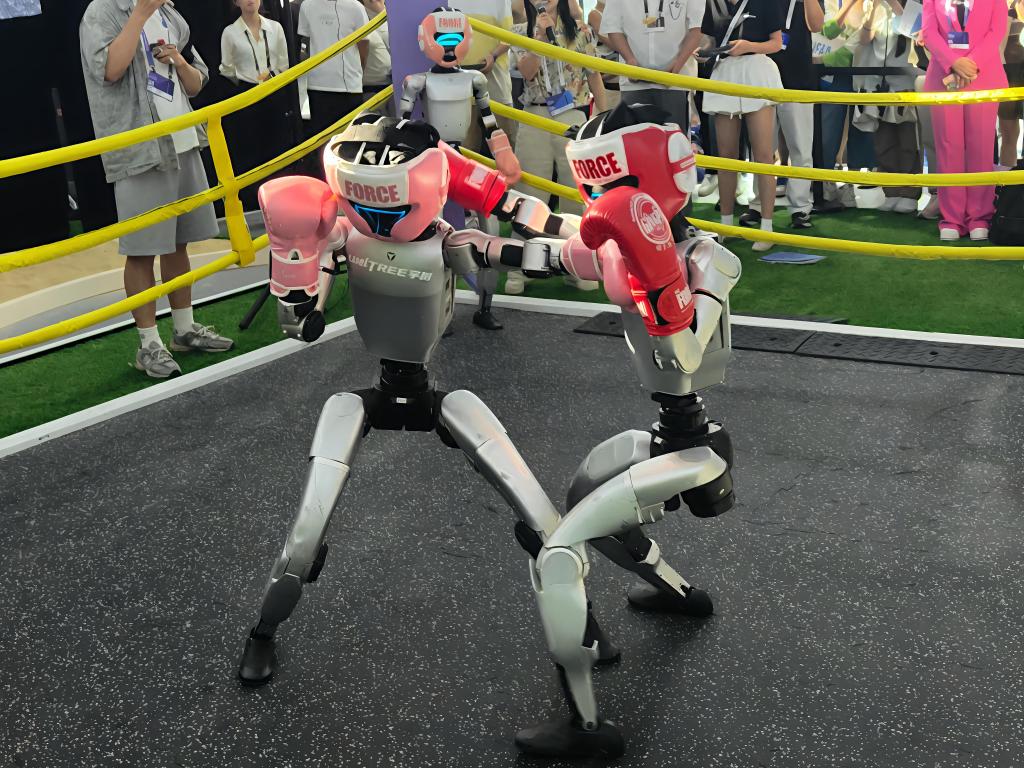 外滩大会上,宇树科技的机器人进行拳击赛。新华社记者张千千 摄