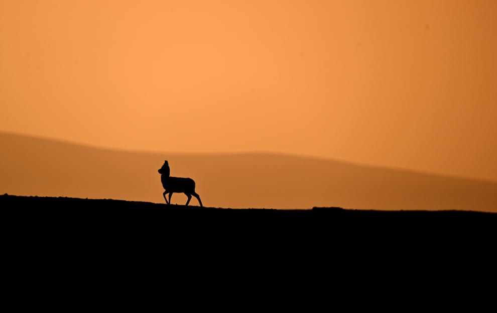 一只雌性藏羚羊在可可西里卓乃湖区域活动(2023年6月18日摄)。 新华社记者 张宏祥 摄
