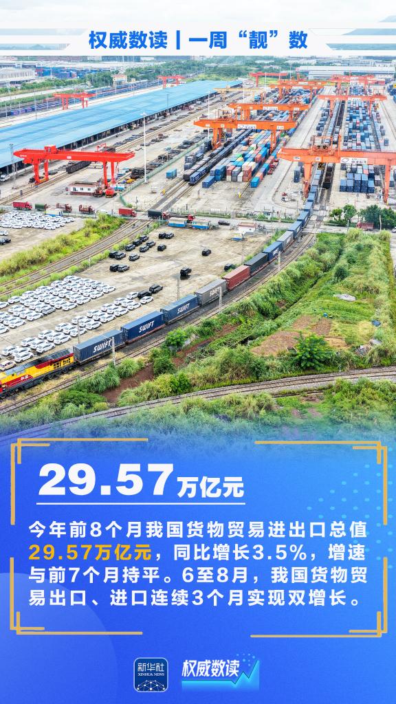前8个月,我国汽车产销量首次双超2000万辆,货物贸易进出口总值接近30万亿元,2024年我国海洋生产总值达到10.5万亿元……本周这些数据,最值得关注!