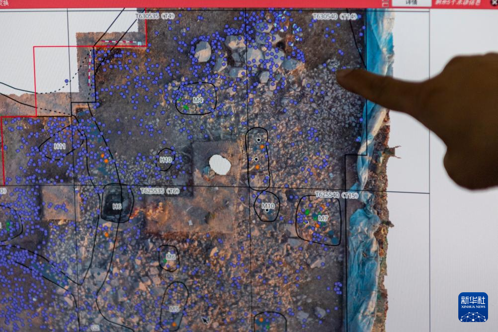 在位于哈尔滨市的黑龙江省文物考古研究所,工作人员在电脑屏幕上查看小南山遗址一处发掘区的出土文物分布坐标图(8月27日摄)。新华社记者 谢剑飞 摄