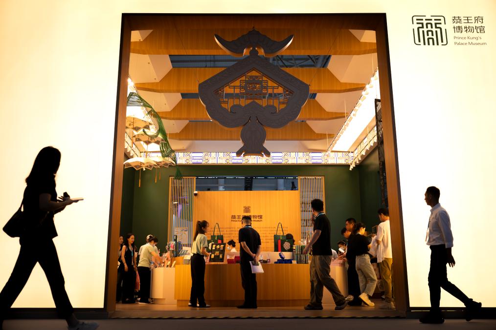 中国国家博物馆展区的孝端皇后凤冠冰箱贴是最火爆的文创产品之一,现场刚开售就排起了长队。中国国家博物馆文创负责人廖飞介绍,自去年推出以来,截至今年八月底,两款凤冠冰箱贴已售出228万余件,带动凤冠IP全系列五十余款文创产品总销售额超2亿元。
