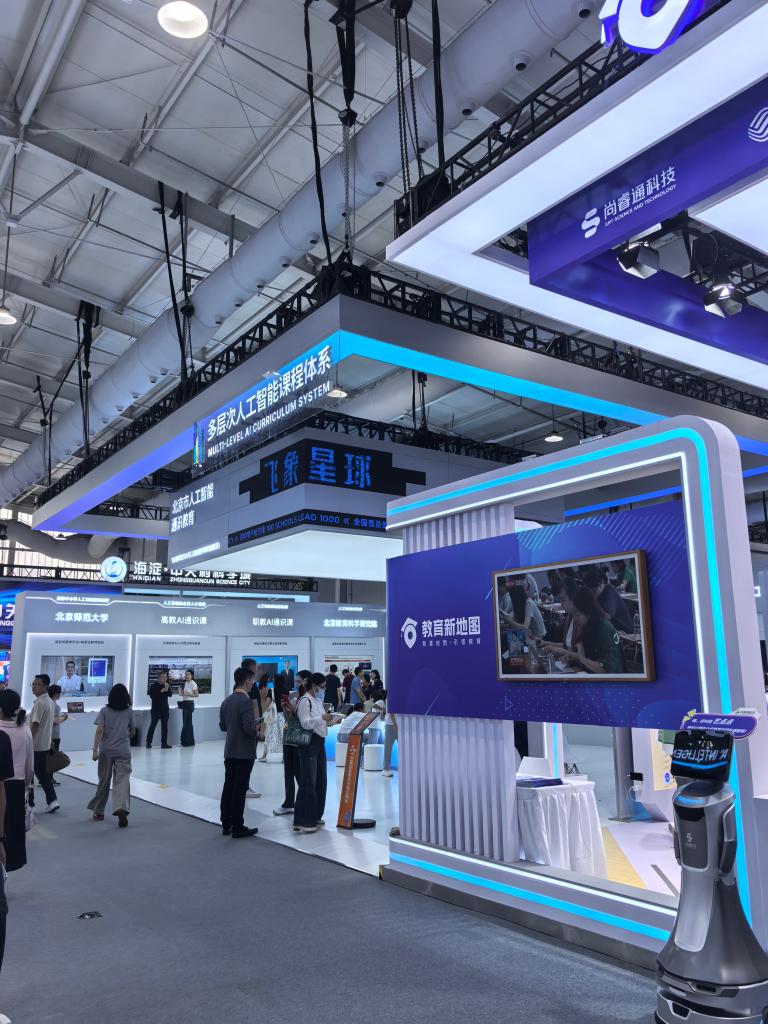 尚睿通科技的课间机器人、北教书院的AI智习室、“智学伴”彩色墨水屏学习机……服贸会上展示多项“AI教育+”最新成果,大大小小的智能终端,让人直呼新奇。