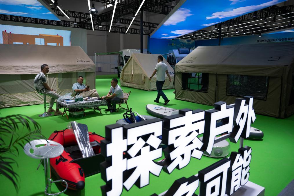 在文旅装备展区,湖北随州特色文旅装备展馆面积超600平方米。随州作为“中国专用汽车之都”,此次展出了多款特色房车,如商旅房车、越野房车、旅居房车、多功能房车等。另一边,则是露营帐篷、充气床垫、皮划艇、桨板等随州制造的户外休闲运动装备。