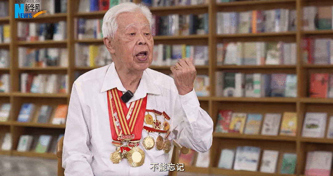 抗战老兵罗竞辉。动图截取自新华网视频《重访抗战地标|威震东江·秘密大营救》