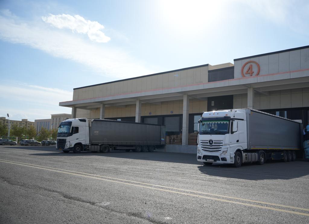 9月11日,在新疆阿拉山口跨境电商产业园,两辆来自哈萨克斯坦的货车在等待装货。新华社记者 张浩波 摄