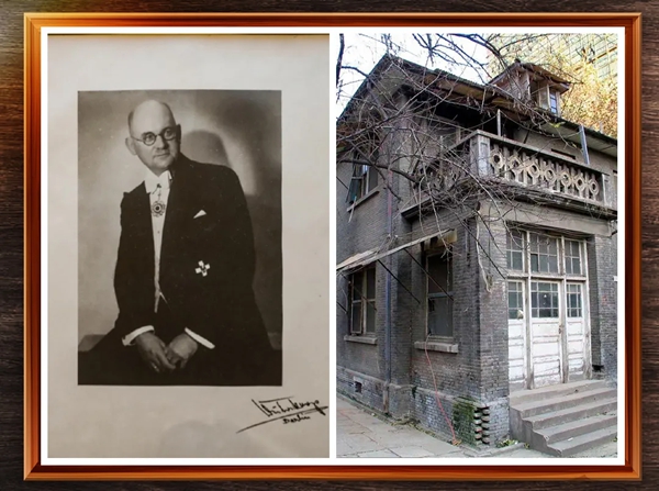 左图是拍摄于1938年的约翰·拉贝照片;右图是2005年12月在南京大学校内拍摄的约翰·拉贝故居。