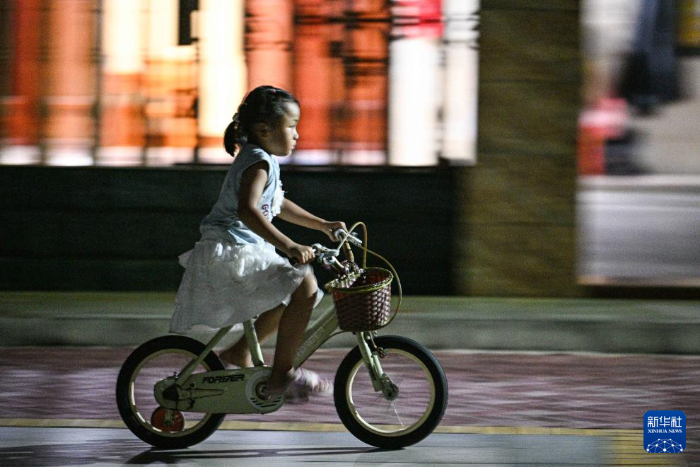 9月3日,小朋友在位于海南省文昌市文教镇加美村的自家屋外骑行玩耍。