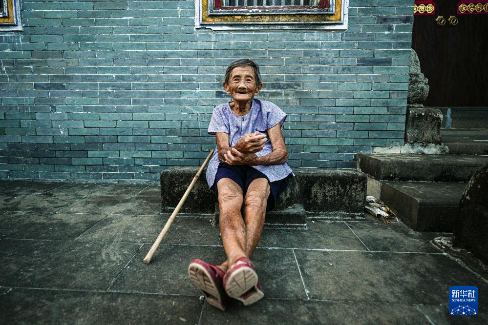 9月9日,在海南省文昌市文教镇加美村,年迈的村民在邢宥故居门前纳凉。
