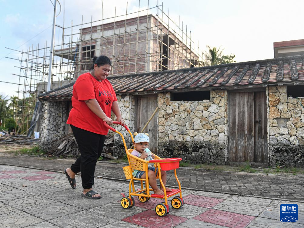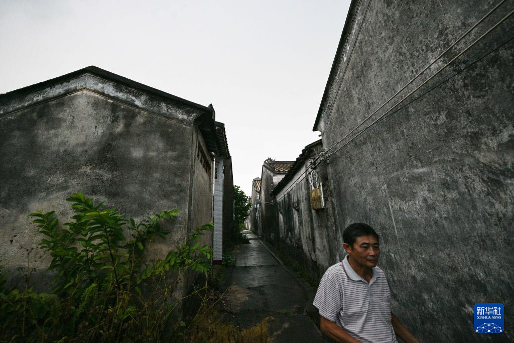 9月4日,村民在海南省文昌市文教镇加美村散步时经过一处传统建筑,远处新建的楼房正拔地而起。