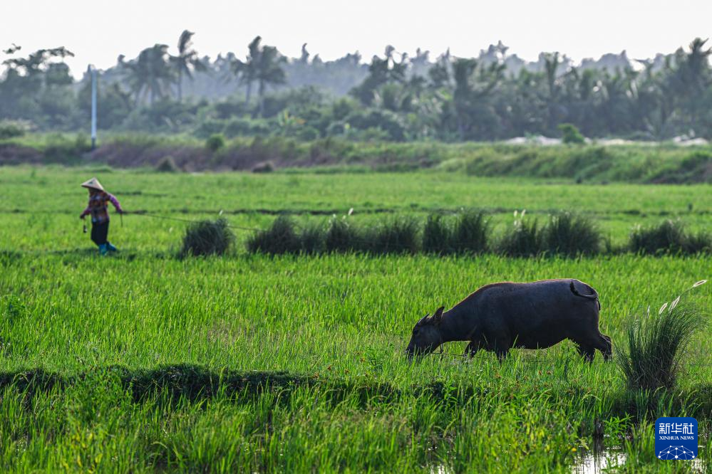 9月9日,村民在海南省文昌市文教镇加美村田间放牛。