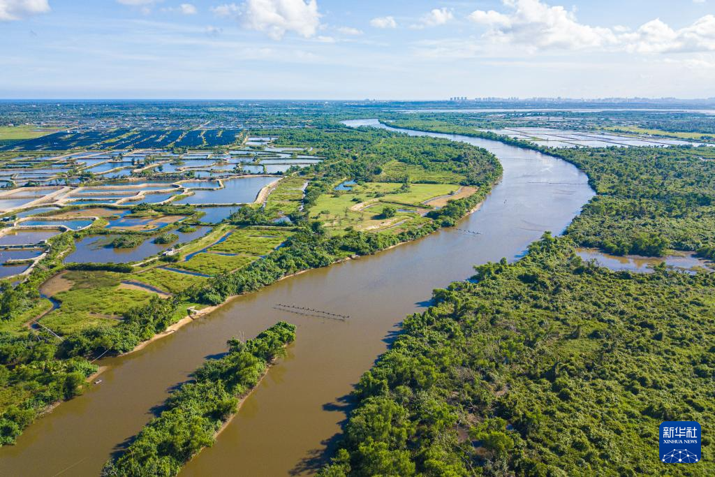 这是在海南省文昌市文教镇加美村拍摄的与该村毗邻的文教河(无人机照片,9月3日摄)。