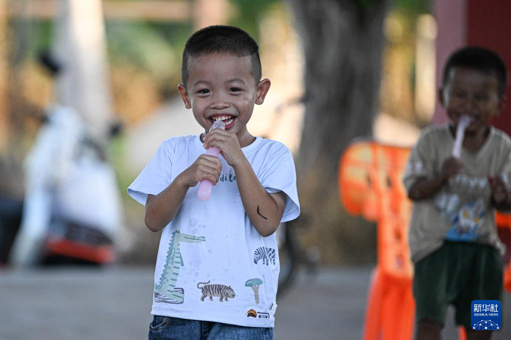 9月3日,小朋友在海南省文昌市文教镇加美村吃棒冰。