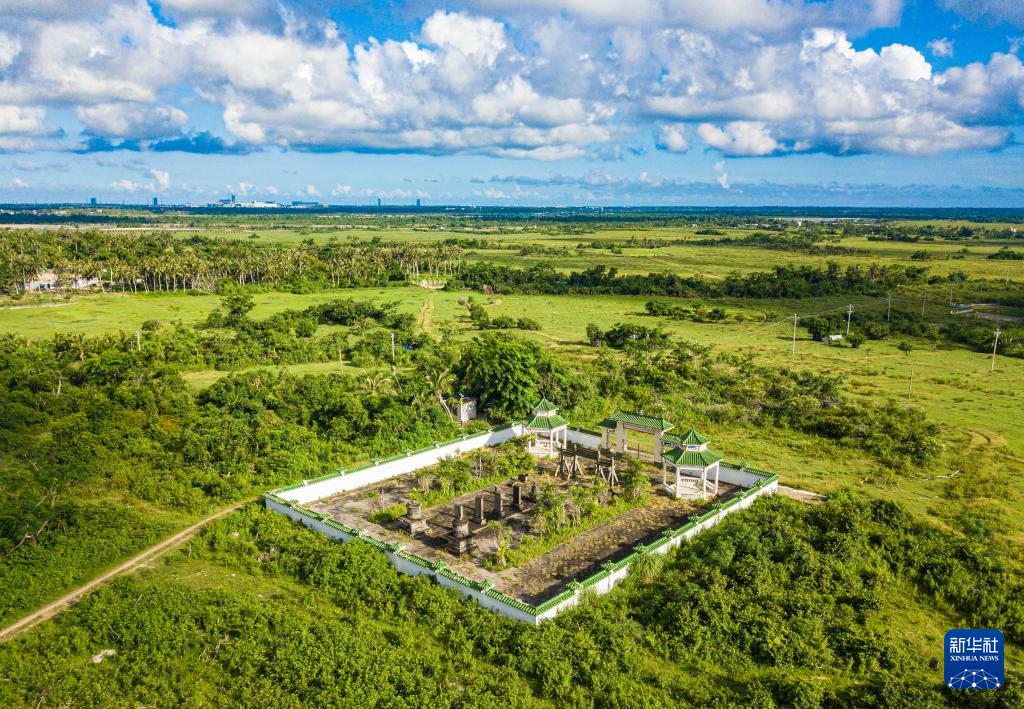 这是位于海南省文昌市文教镇加美村周边的邢宥夫妇墓(无人机照片,9月4日摄)。