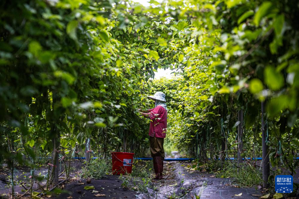 9月11日,农民在海南省文昌市文教镇加美村百香果种植基地采摘百香果。