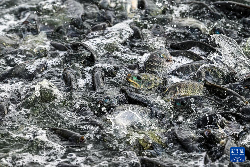 这是在海南省文昌市文教镇加美村养殖塘拍摄的抢食的鱼儿(9月8日摄)。