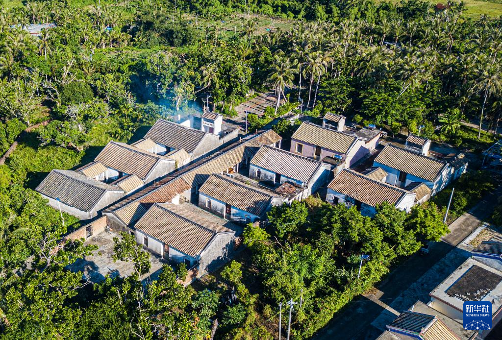 这是在海南省文昌市文教镇加美村拍摄的传统民居,村巷整齐,炊烟袅袅(无人机照片,9月11日摄)。