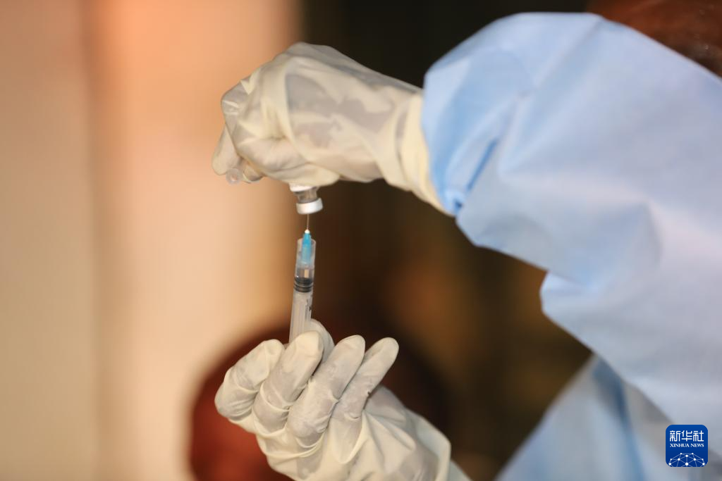 9月13日,在刚果(金)开赛省布拉佩卫生区,医护人员准备注射埃博拉疫苗。新华社发(世界卫生组织供图/若埃尔·伦巴拉摄)