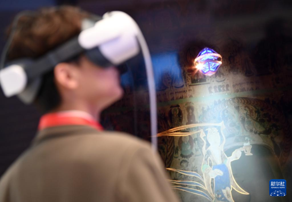 9月17日,与会嘉宾在论坛的文化遗产数字化精品项目展上体验敦煌研究院《寻境敦煌》项目。新华社记者 李一博 摄