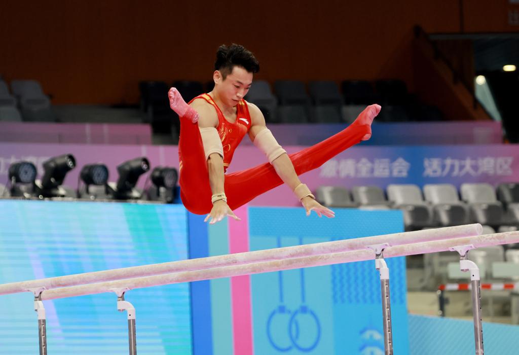 9月9日,邹敬园在中国国家男子体操队2025年世界体操锦标赛第二次选拔测验赛中。新华社发(刘春林摄)