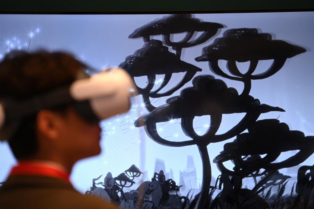 9月17日,与会嘉宾体验敦煌研究院的数字项目。 新华社记者 李一博 摄