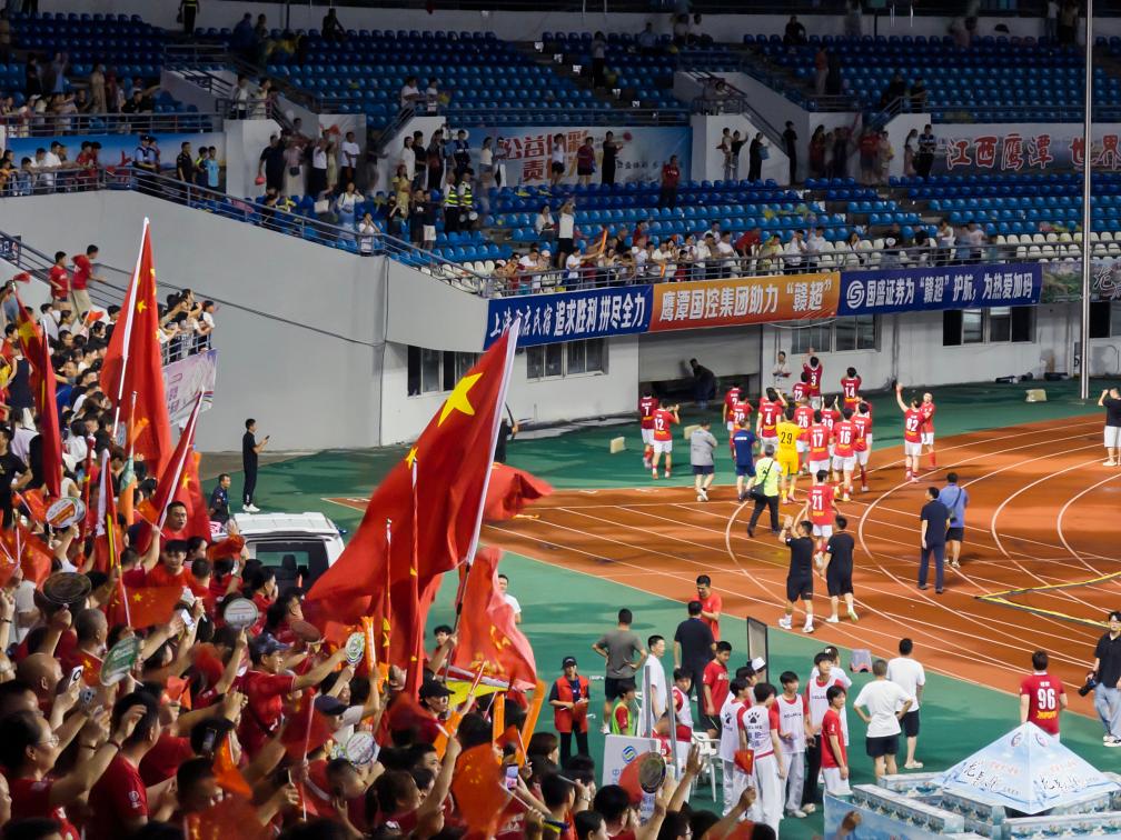 当鹰潭队3:0战胜景德镇队的终场哨响