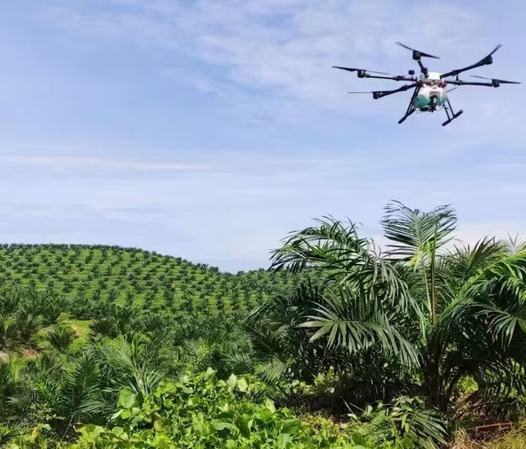 无人机在马来西亚智慧棕榈园识别作业。(润建股份供图)