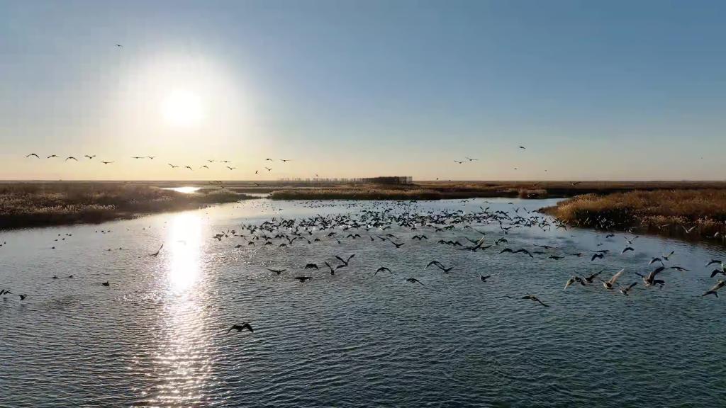 2024年12月,在黄河入海口自然保护区,随着水质变好,湿地鸟类品种成倍数增加。(受访者供图)