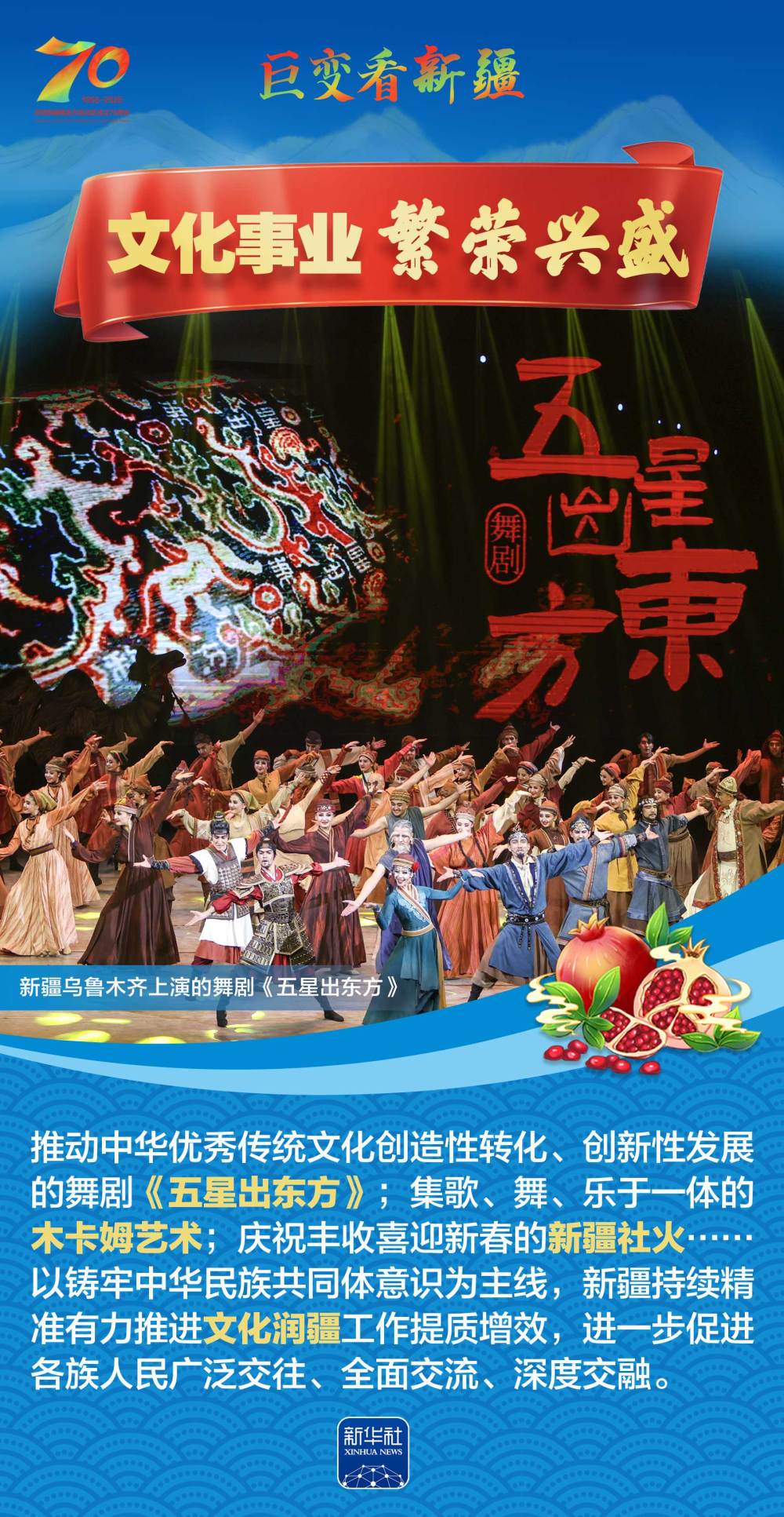1955年10月1日,新疆维吾尔自治区成立,开启了新疆民族区域自治的光辉历程。70年来,新疆各族人民生活水平大幅提高,社会事业全面进步,生态环境显著改善……让我们跟随这组海报,一起见证在党中央坚强领导下,新疆各族群众团结奋进、砥砺前行的光辉历程,感受天山南北高质量发展的壮阔画卷。