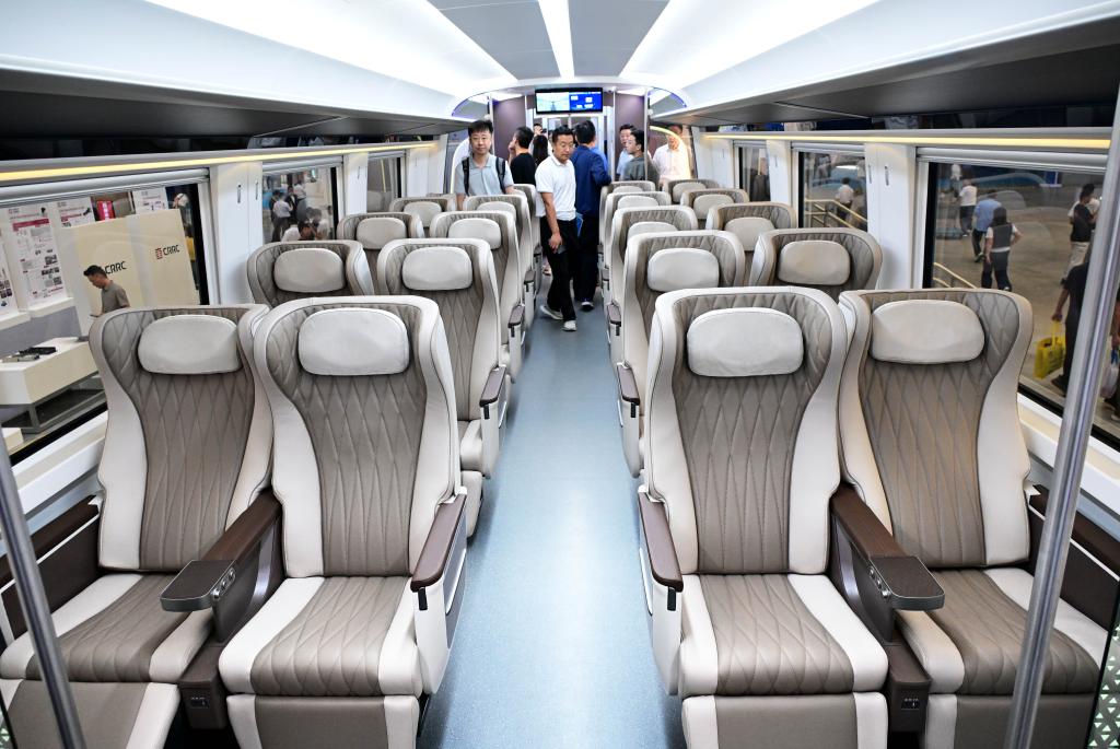 9月18日,人们在智能市域列车上参观。新华社记者 李紫恒 摄