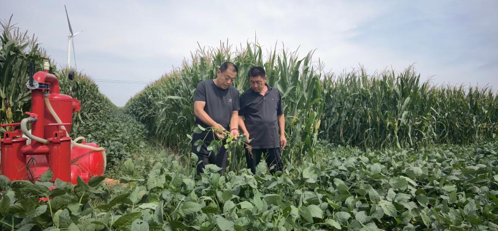 “好马配好鞍,好地配好技。”德州市夏津县新盛店镇新盛店村种粮大户王德春说。他管理的120亩玉米大豆带状复合种植地块将于10月上旬丰收。他根据农技专家指导,铺设滴灌带、应用水肥一体化设备,促进单产提升,预计复合种植地块亩均增产5%以上。
