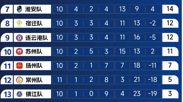 江苏省城市足球联赛目前积分榜情况