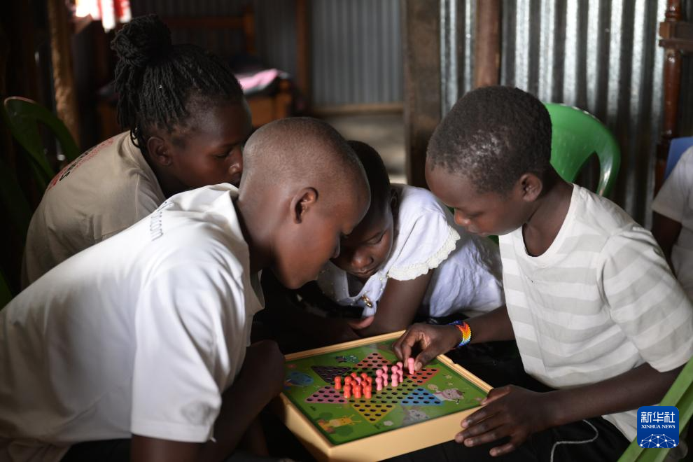 8月31日,在肯尼亚西南部纳罗克郡西纳罗克区艾通镇的女童救助中心,女孩们在下棋。新华社记者 杨光 摄